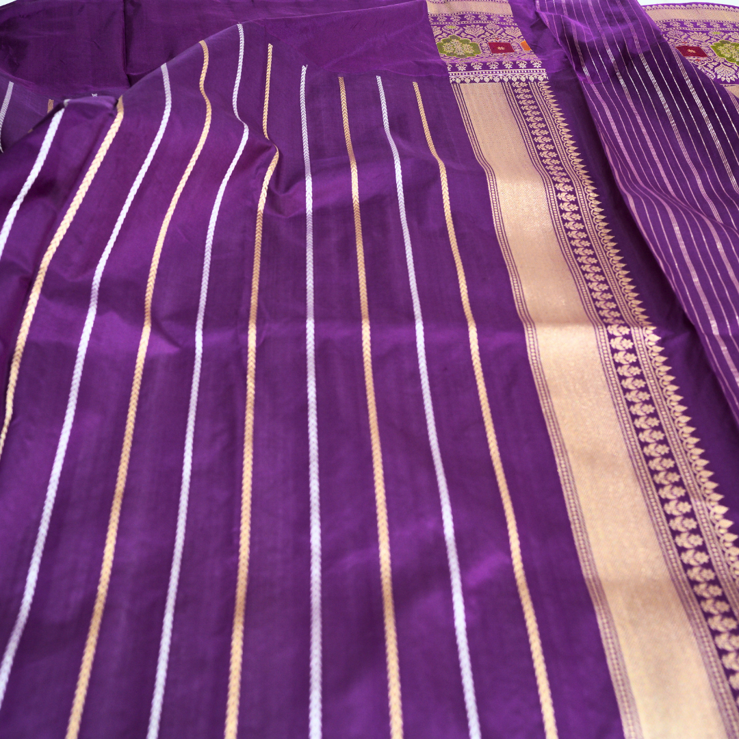 Blouse: Katan designer blouse with sona-rupa zari strip and scaleup border